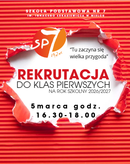 Rekrutacja do klas pierwszych 2026/2027 w SP nr 7 w Mielcu!