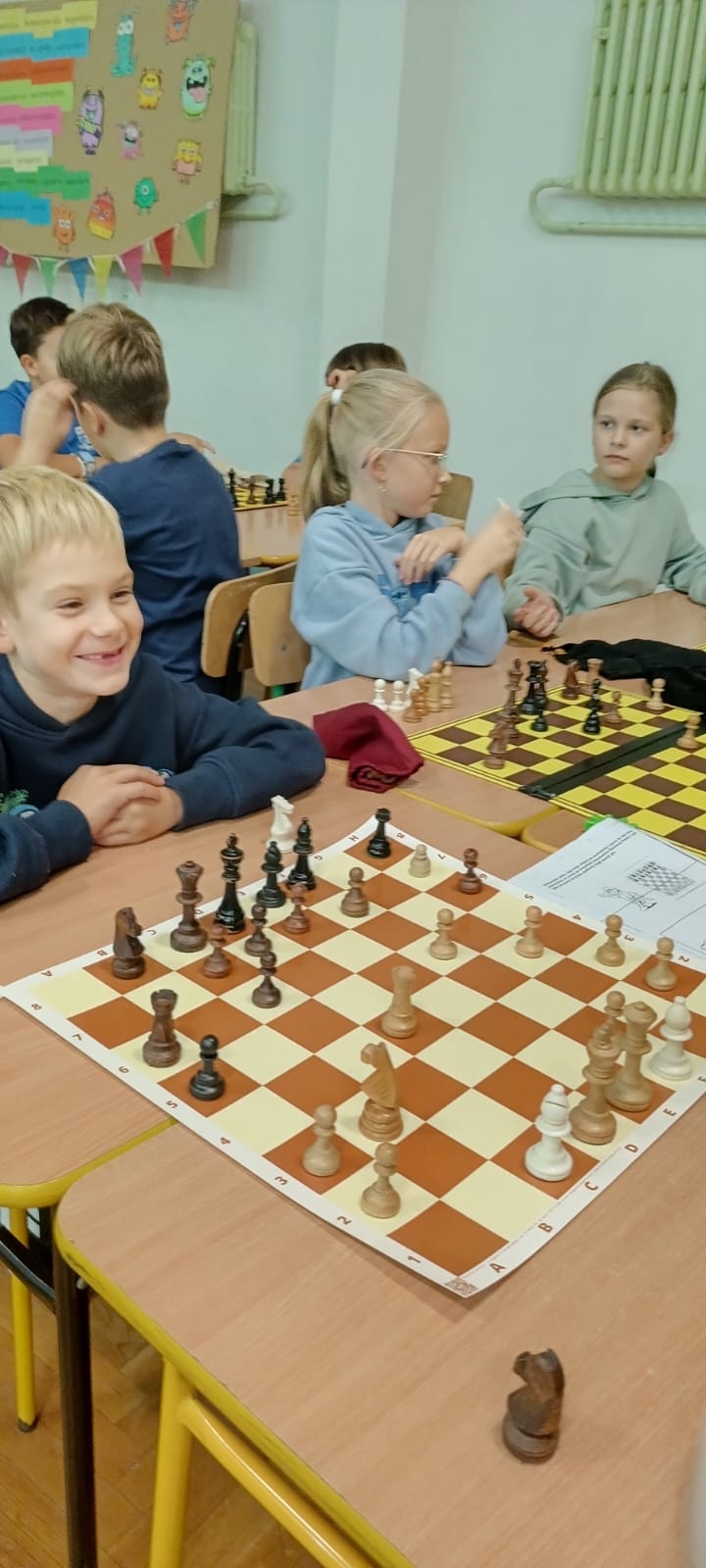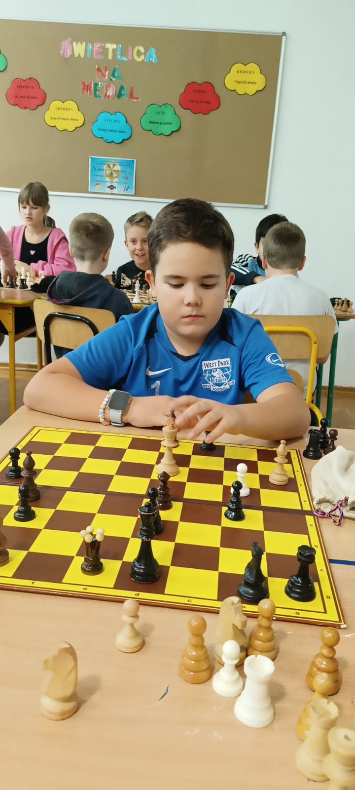 Dzieci z zapałem poznają figury, zasady gry i pierwsze strategie.