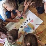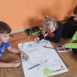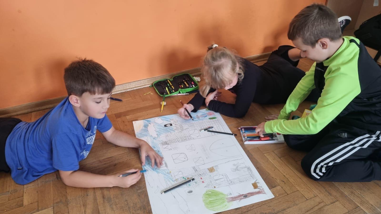 Uczniowie klas I-II uczęszczający na świetlicę, biorą udział w projekcie czytelniczym pt.„W Akademii pana Kleksa”. Na pierwszych zajęciach, dotyczących rozdziału „Ta i inne bajki”, dzieci odpowiadały na pytania związane z treścią książki, a następnie w grupach stworzyły plastyczne projekty własnej Akademii Pana Kleksa. Zajęcia rozwijały wyobraźnię, kreatywność i współpracę.