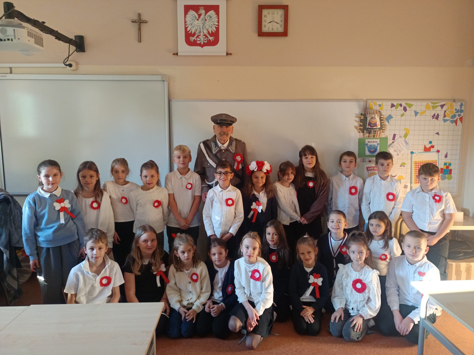 7 listopada nasza szkoła świętowała obchody odzyskania przez Polskę niepodległości. Z tej okazji mieliśmy zaszczyt gościć Józefa Piłsudskiego – w rolę Marszałka wcielił się Janusz Pacholec. Uczniowie mogli nawiązać dialog z Marszałkiem, zadawać pytania oraz wziąć udział w krótkiej inscenizacji jego życia i działań. Szczególnym momentem był wywiad Piłsudskiego z jego rodziną. W inscenizacji wystąpili słuchacze Senior Show (MUTW) oraz nauczyciele SP 7, tworząc wyjątkową, edukacyjną atmosferę, za co serdecznie dziękujemy.