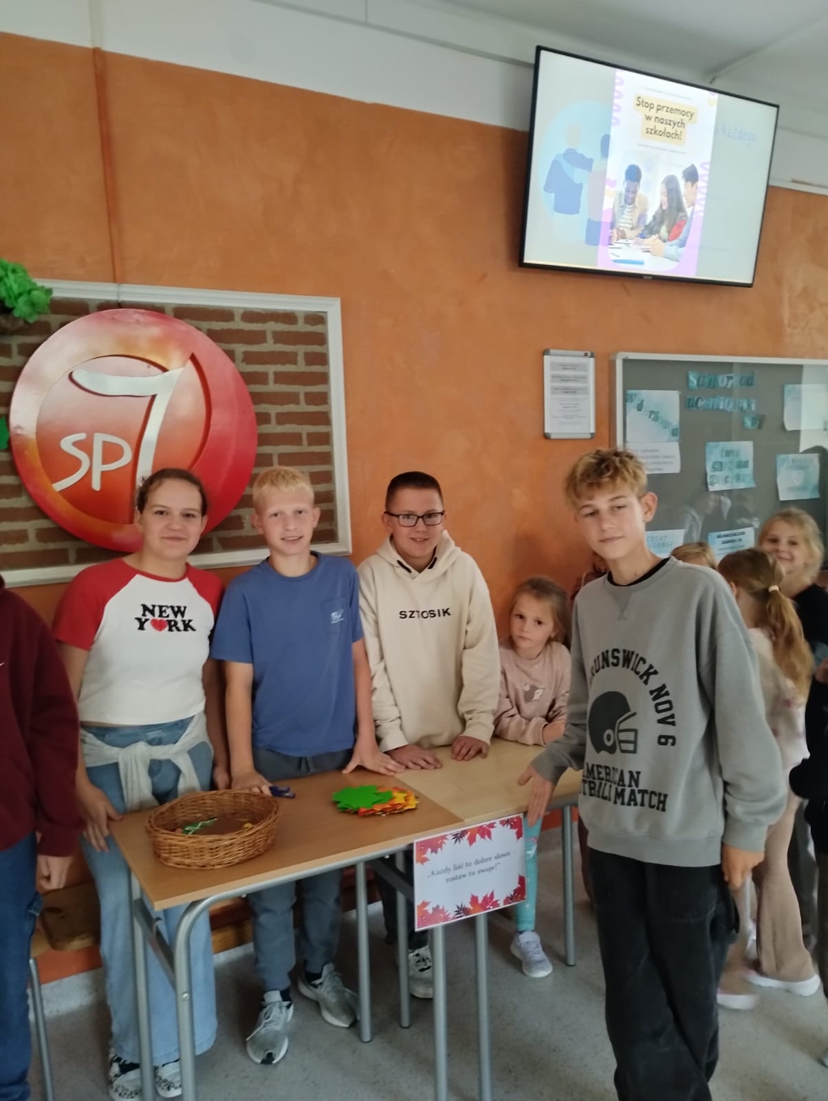Wszystkie liście zawisły na symbolicznym drzewie, tworząc barwną kompozycję pełną serdeczności, akceptacji i szacunku.Drzewo stało się pięknym symbolem tego, jak ważna jest empatia i dobre słowo w relacjach rówieśniczych. Dziękujemy wszystkim uczniom, nauczycielom i pracownikom za zaangażowanie i wspólne budowanie atmosfery życzliwości w naszej szkole.